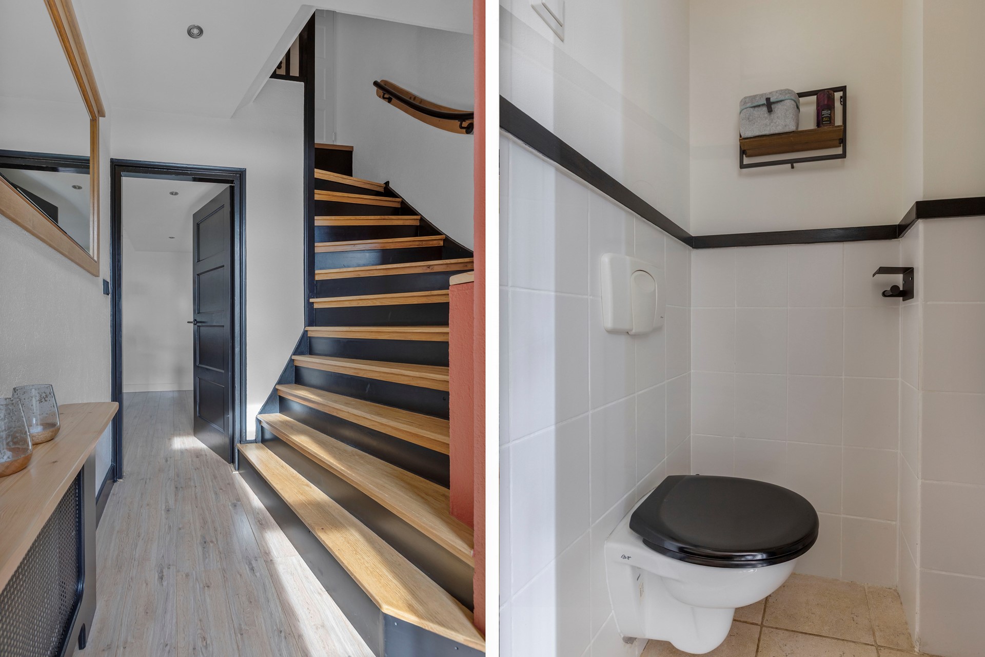 Je komt binnen in de hal met toegang tot het toilet, de meterkast en de trapopgang.