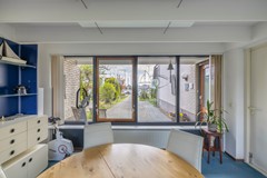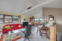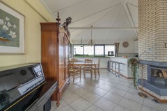 - Woonkamer, met eetgedeelte en woongedeelte, houtkachel en openslaande deuren