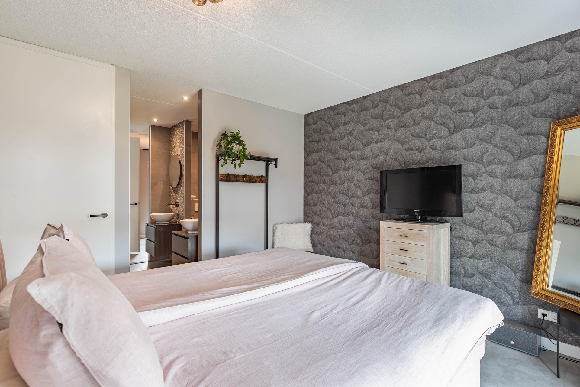 - Master-bedroom met luxe badkamer ensuite met inloopdouche, 2e toilet, dubbele wastafels met spiegels met verlichting