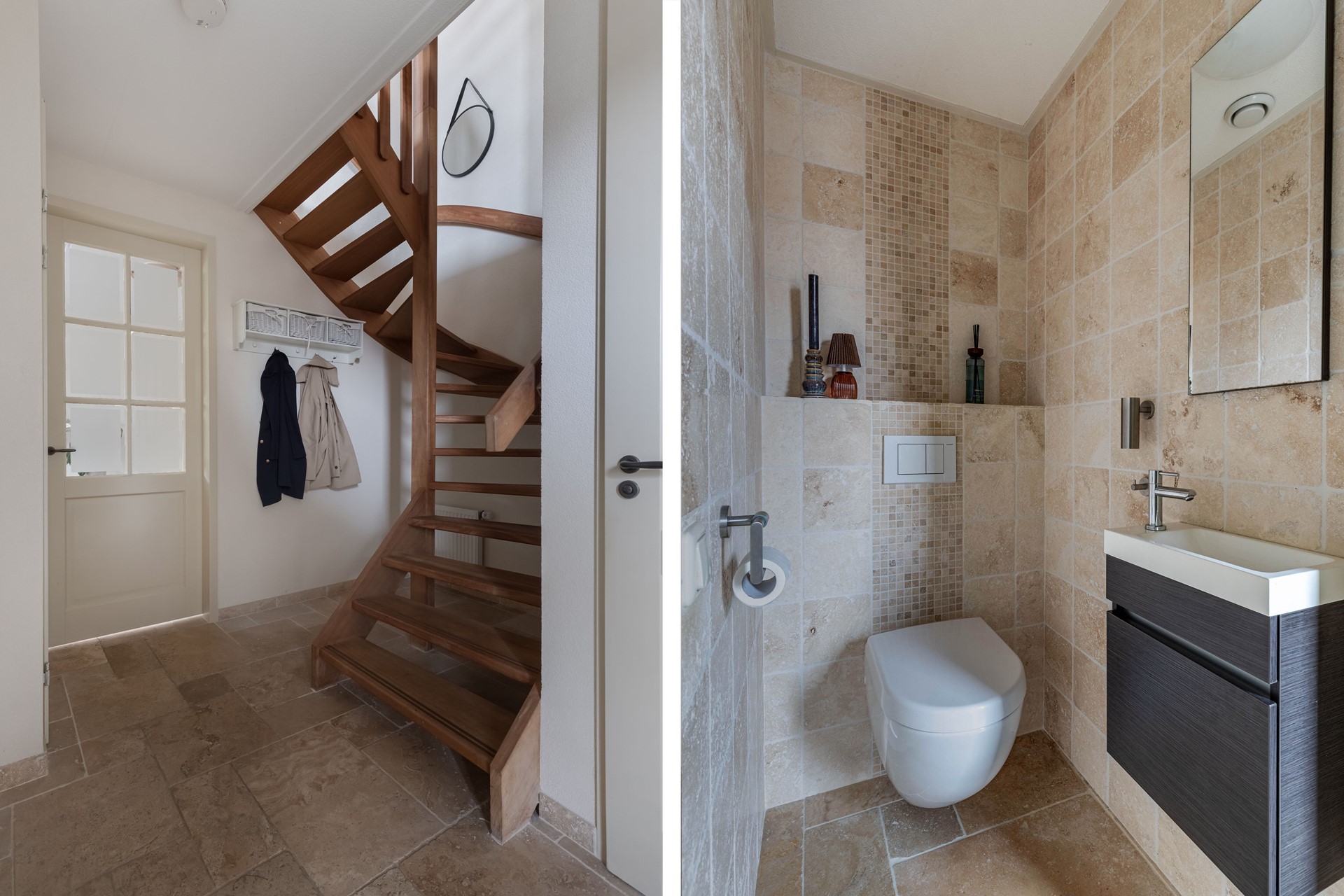 Ook buiten is aan ruimte en comfort gedacht. De woning beschikt over een verzorgde voortuin op het westen en een ruime achtertuin op het oosten, waardoor je op elk moment van de dag een fijne plek in de zon of schaduw vindt. De achtertuin is deels bestraat en gecombineerd met groen, dat uitnodigt tot spelen of ontspannen. Achterin de tuin staat een vrijstaande houten berging met overkapping. Hier kun je beschut buiten zitten, van een rustig koffiemoment in de ochtend tot lange zomeravonden met het gezin.